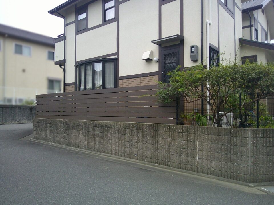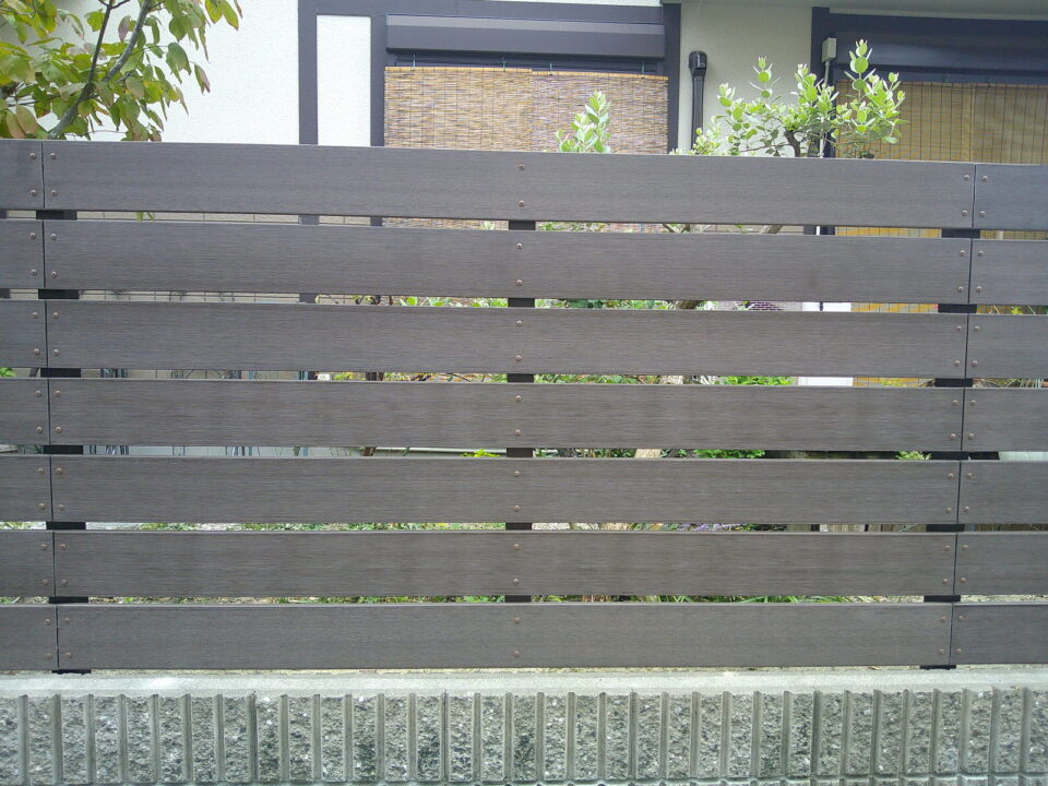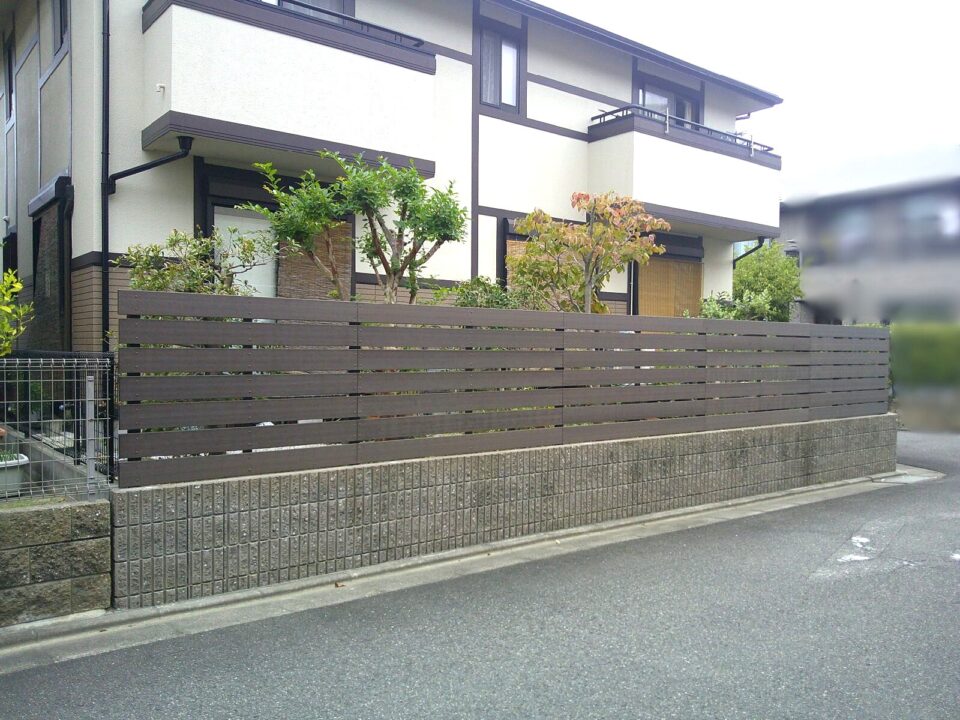 プリペットの生垣から木目調フェンスにリフォーム(八幡市 H様邸)