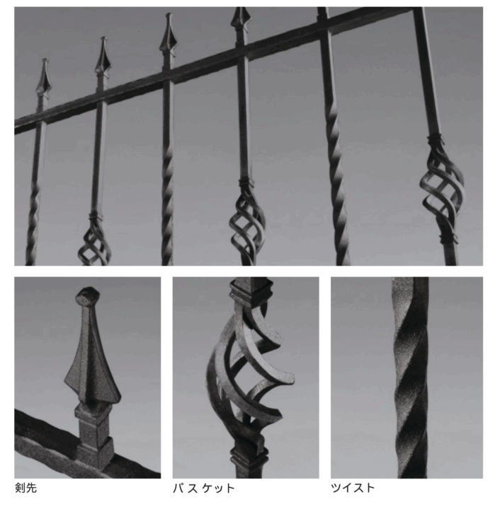 フェンスは三協アルミの「キャスタイル1型」という鋳物フェンスを使用しました。「剣先」「バスケット」「ツイスト」の装飾を組み合わせたディティールが、鋳物フェンスの美しいフォルムをつくりだしています。緑の葉とお花が鋳物フェンスに絡まる美しさは格別です。今後のお庭の変化が楽しみです。
