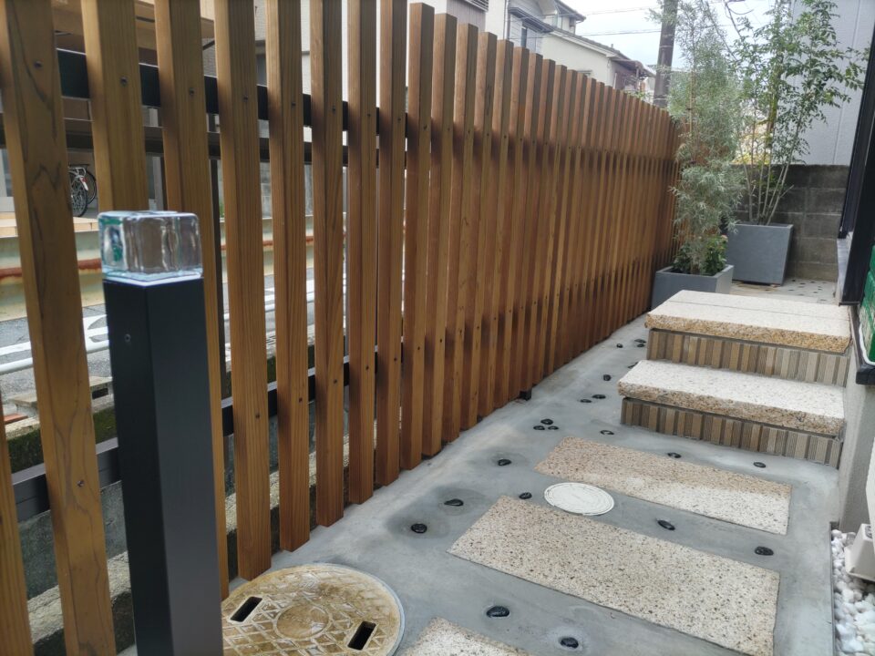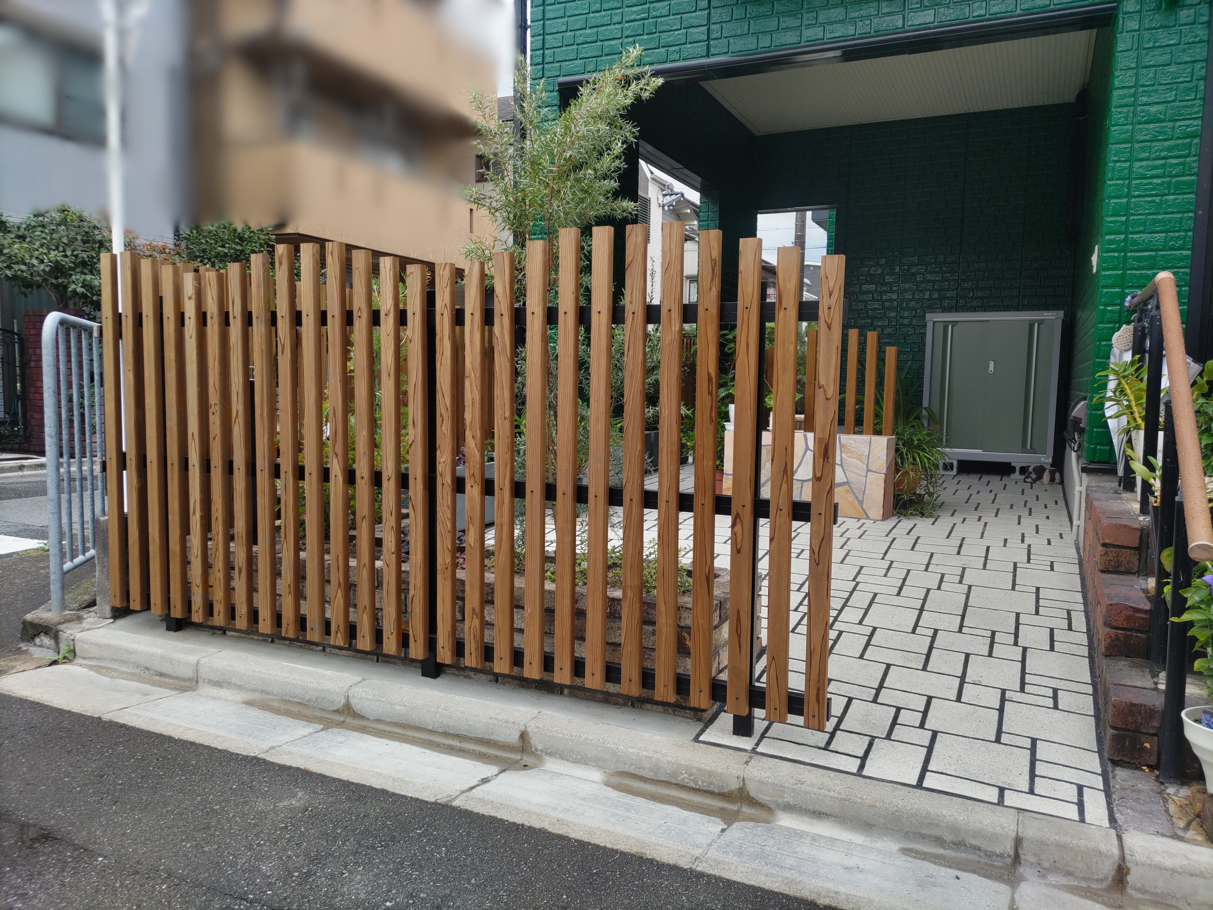 プリペットの生垣から木目調フェンスにリフォーム(八幡市 H様邸)