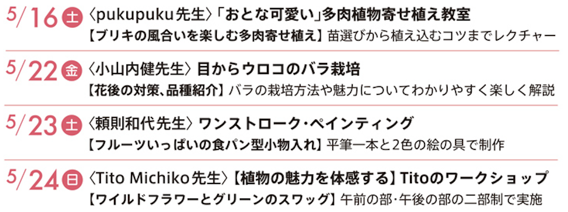 ガーデンセミナー(5/16(土),22(金),23(土),24(日))